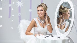 Beautiful bride looking in mirror