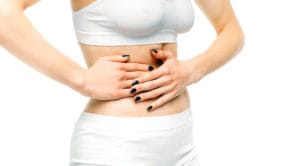 Liver pain, female person on white background
